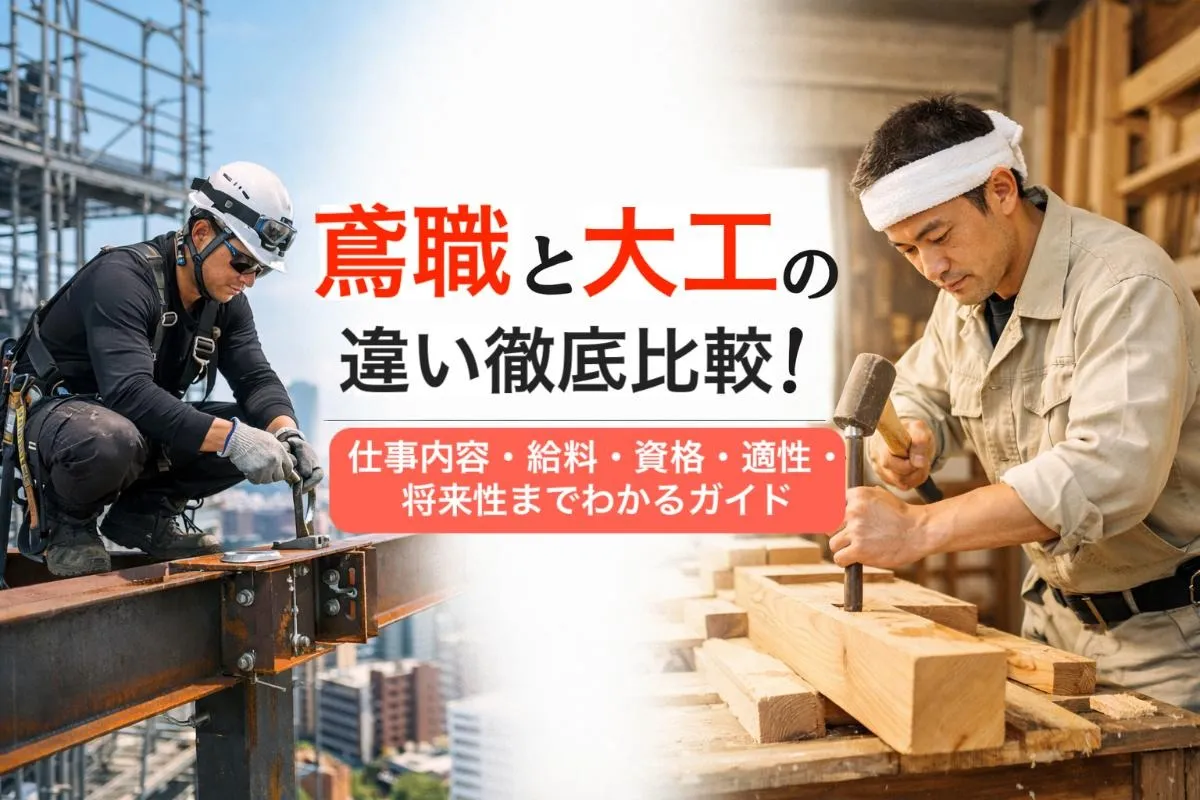 このページでは、鳶職と大工の違いを徹底的に比較し、仕事内容・給料・資格・適性など、現場経験や実際のデータをもとにわかりやすくまとめました。